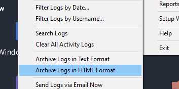 The archive feature is located in the Log Actions menu on SpyAgent's