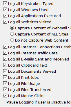 SpyAgent can be set to pause logging if the user is inactive (or idle)